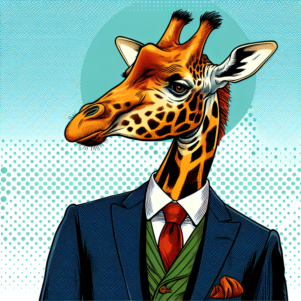 1、イラストのテーマやイメージを入力(例:スーツを着たキリン)